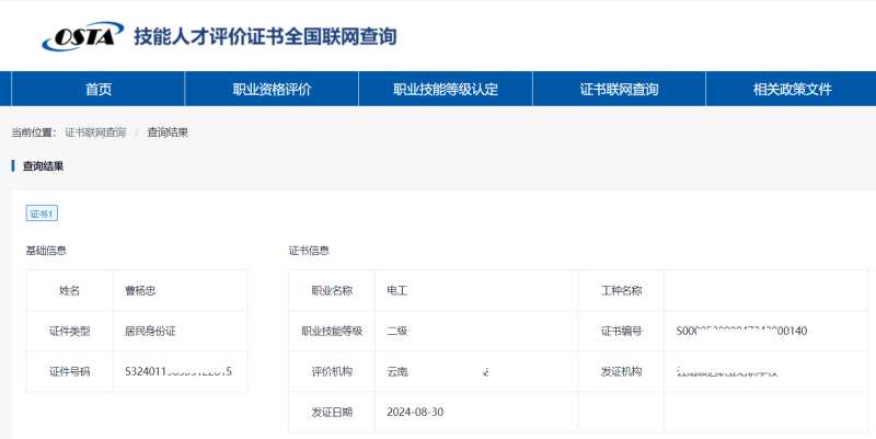 五、技能等级证书查询